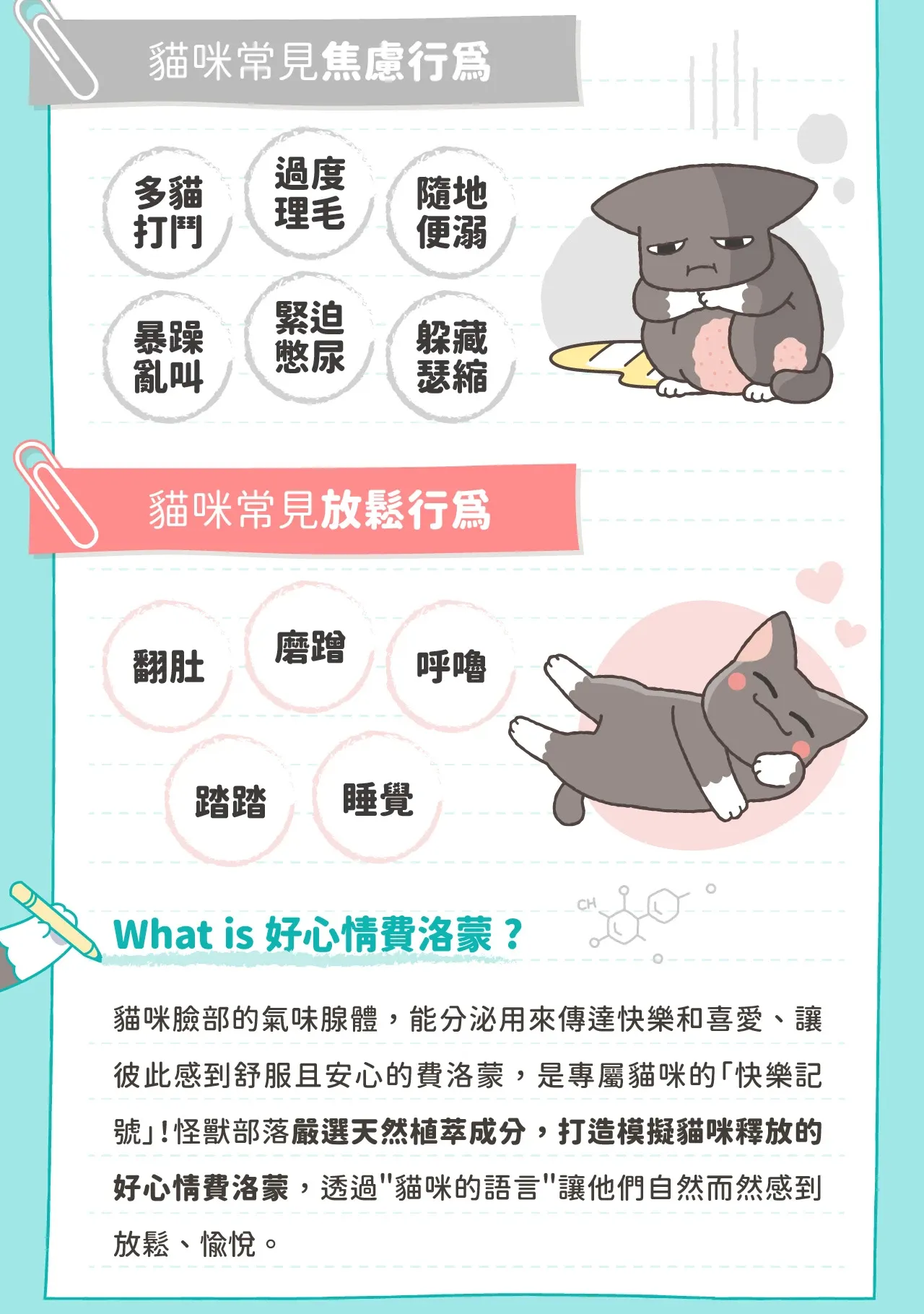 天然植物萃取,來自裸麥、大麥、橄欖、棕櫚,模擬貓咪臉部費洛蒙。