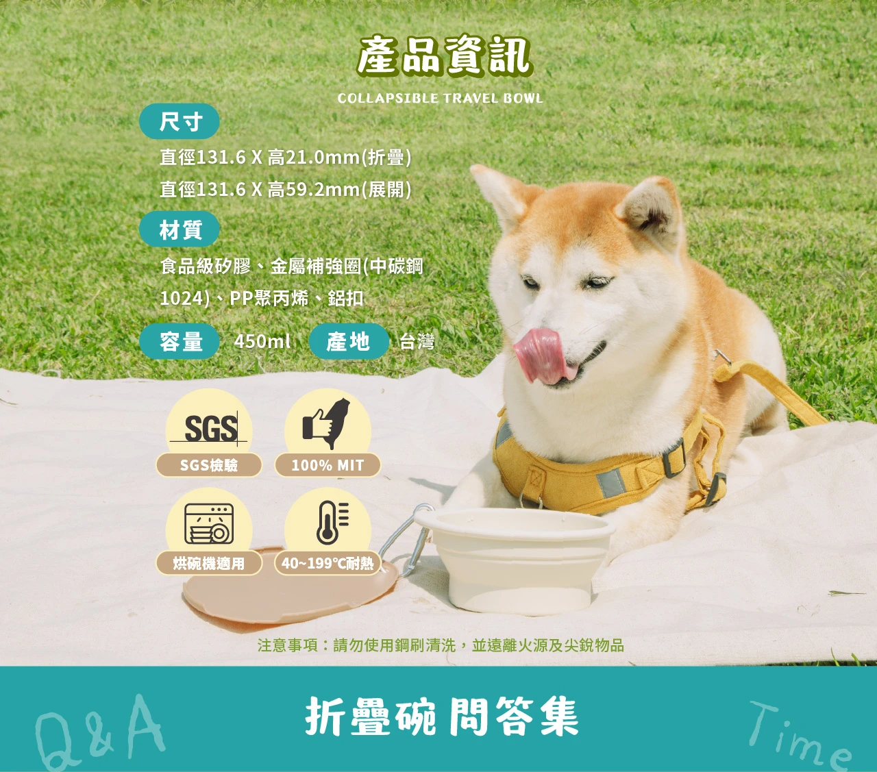 ✔ 專用防塵蓋,隔絕髒污蚊蟲! ✔ 矽膠折疊碗,輕便好攜帶!
