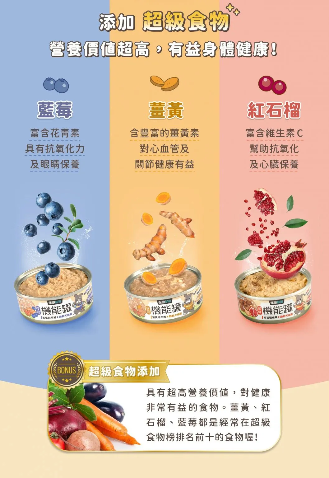 A 可以!機能罐屬於營養完整,可長期食用的機能主食罐。如果想幫小怪獸加強特定部位的保養,也可以搭配保健品一起餵唷!