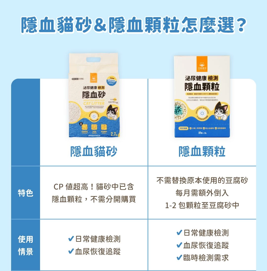 ※ 隱血顆粒僅建議使用於豆腐砂中