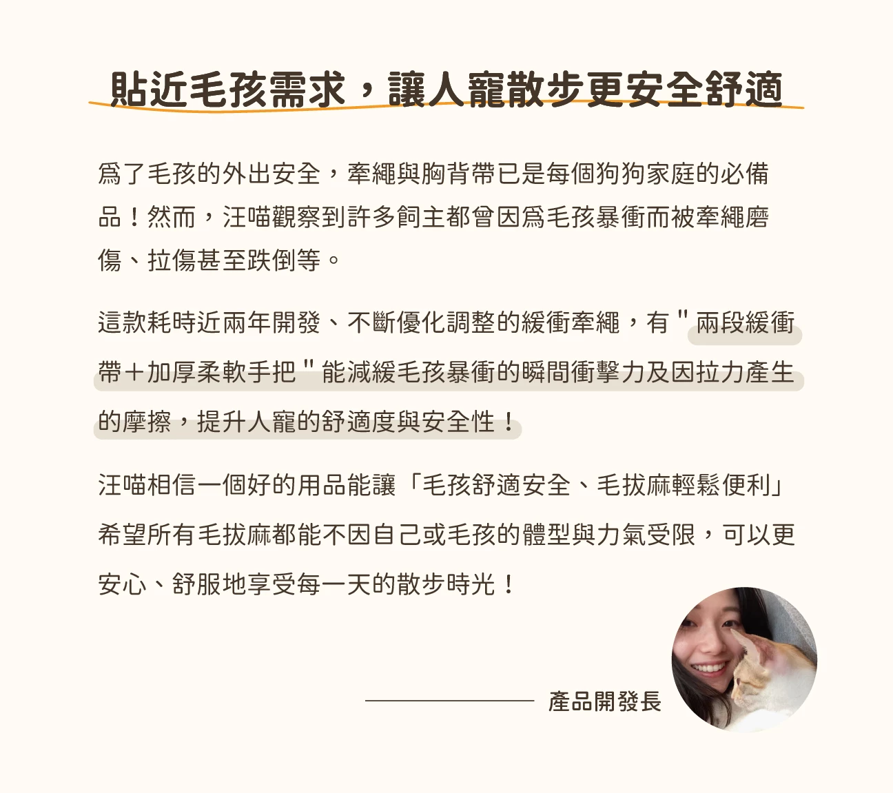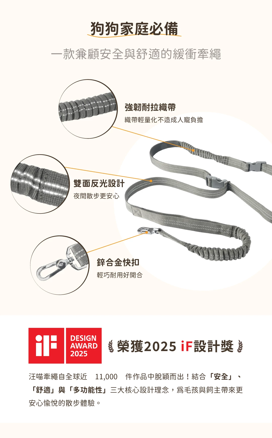 兩段式緩衝設計,降低毛孩暴衝拉力!