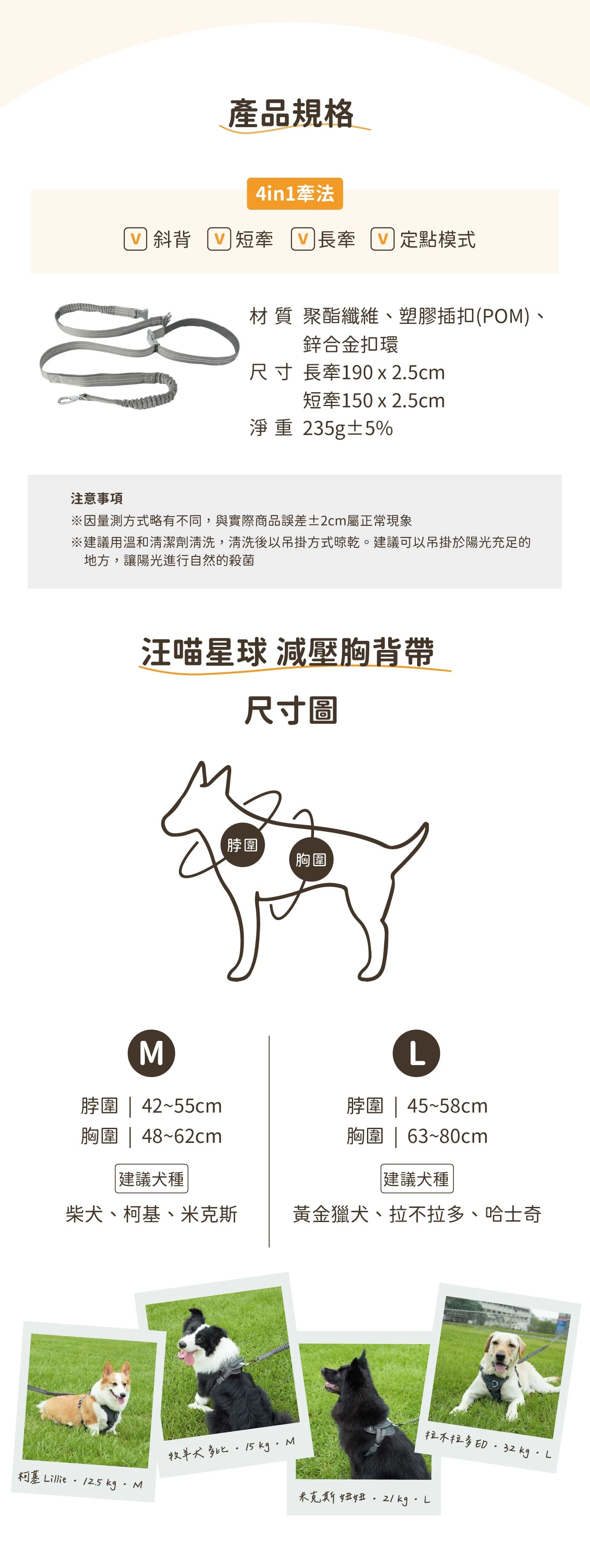 ※ 牽繩&胸背帶售後與保固權益,目前僅適用於台灣地區。
