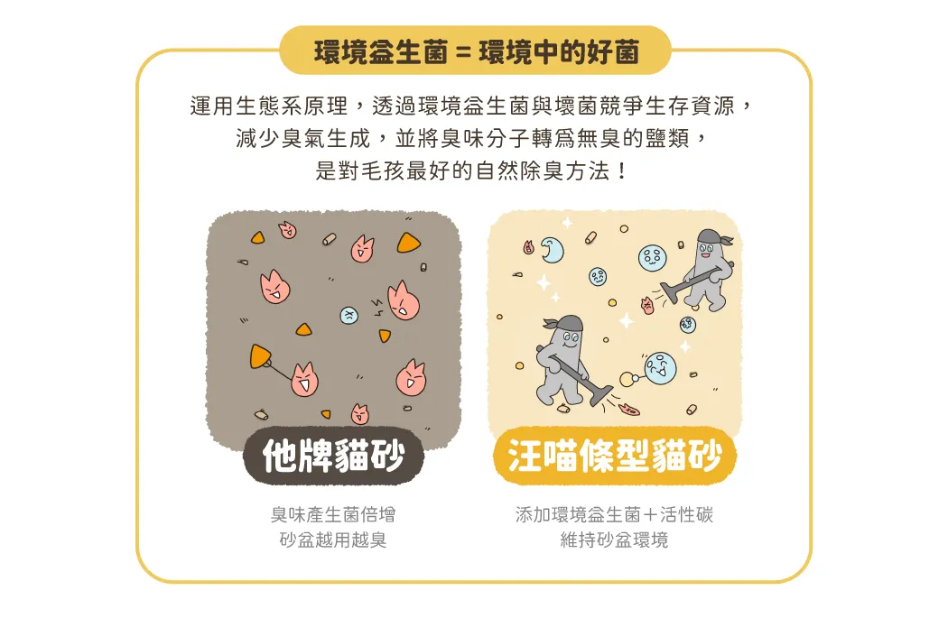 • 活性碳+環境益生菌,雙效去除貓砂異味