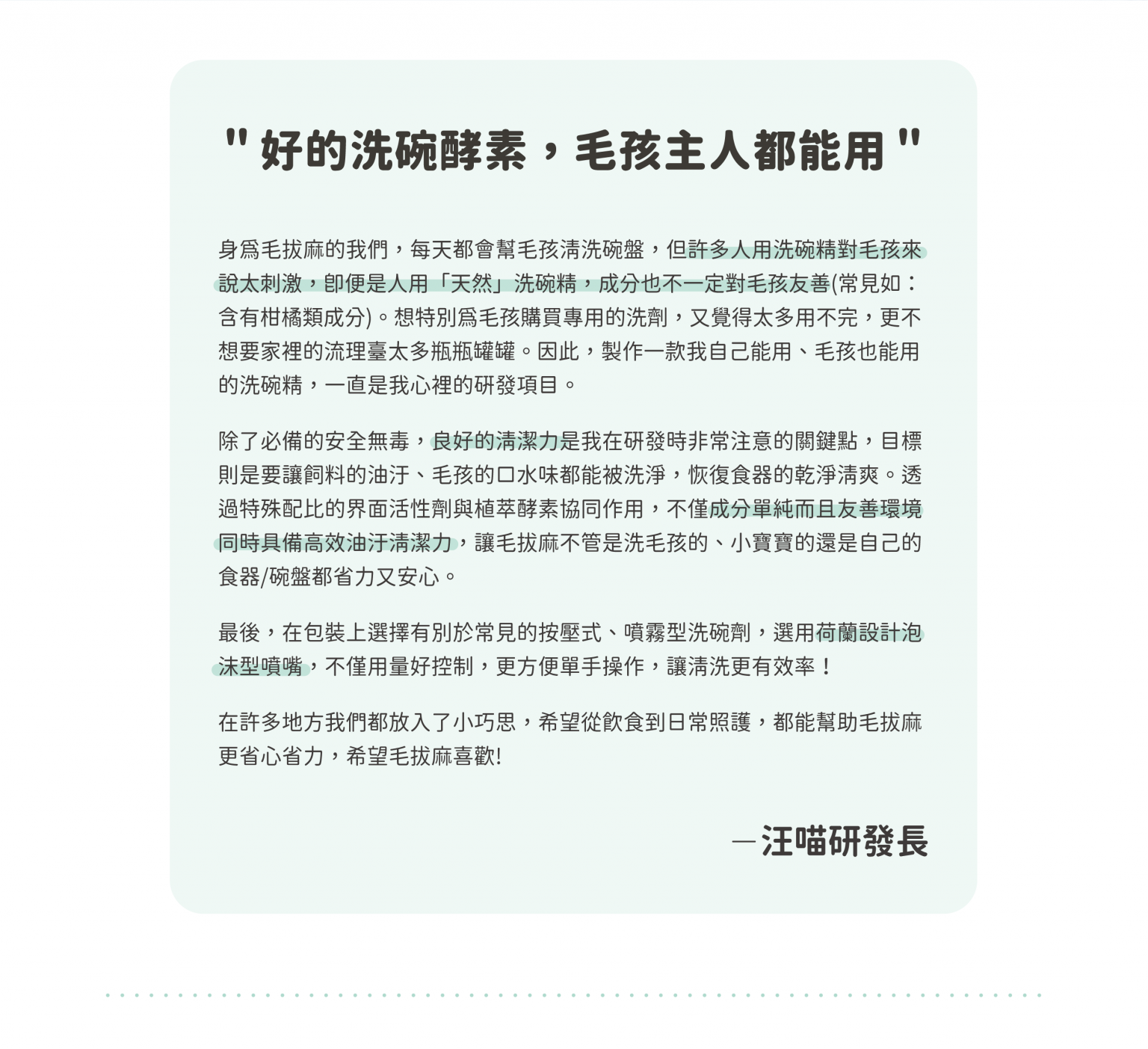 汪喵植萃洗碗酵素的配方對海洋友善嗎?
