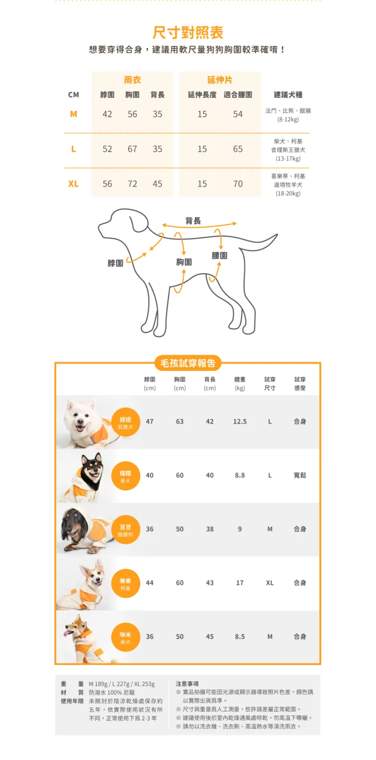 • 另有延伸片+15cm,幫長身毛孩的屁屁擋雨