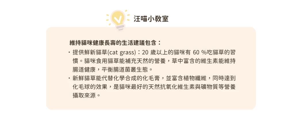 • 天然纖維促進貓咪腸胃蠕動幫助消化