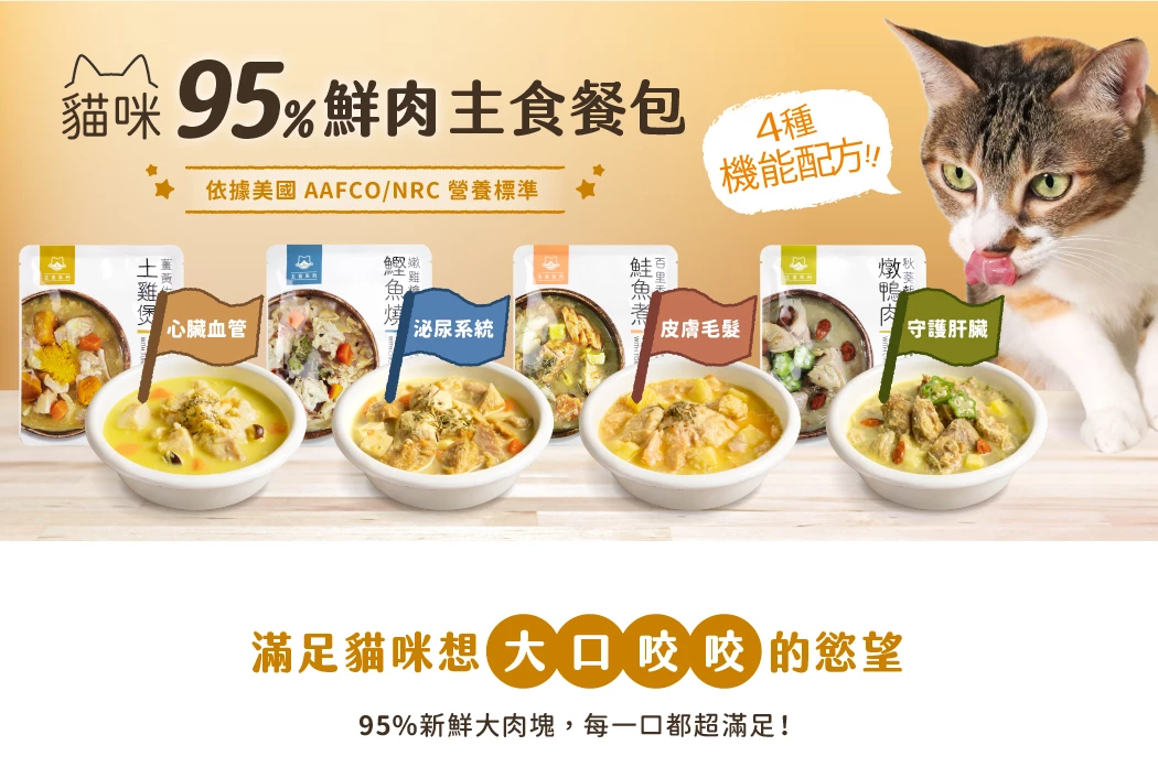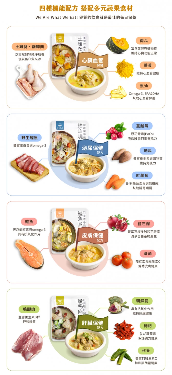 • 四種機能保健配方,讓貓咪吃進美味和營養